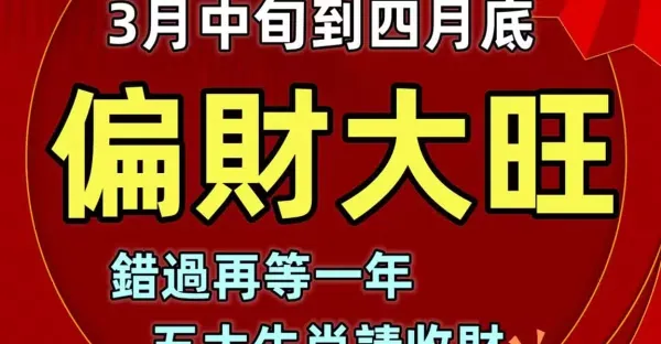 3月中旬到四月底偏財大旺,錯過再等一年,五大生肖快來收財