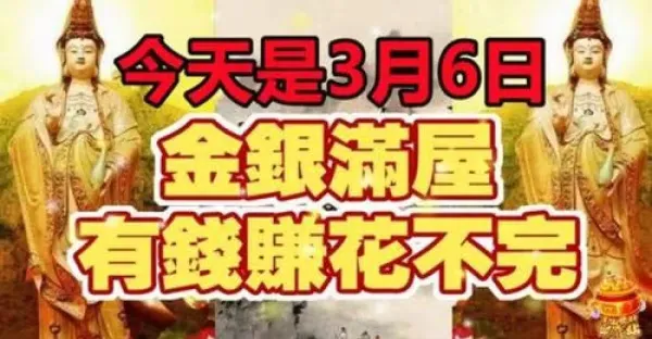 今天是3月6日金銀滿屋,有錢賺花不完的生肖快來接