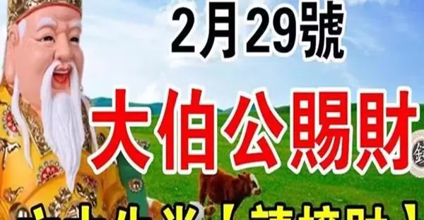 2月29號大伯公賜財,六大生肖請接財