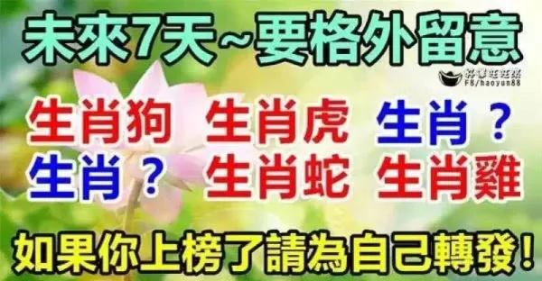 未來7天內,要格外留意啦!生肖狗,生肖虎,生肖蛇,生肖豬,生肖雞,生肖牛!