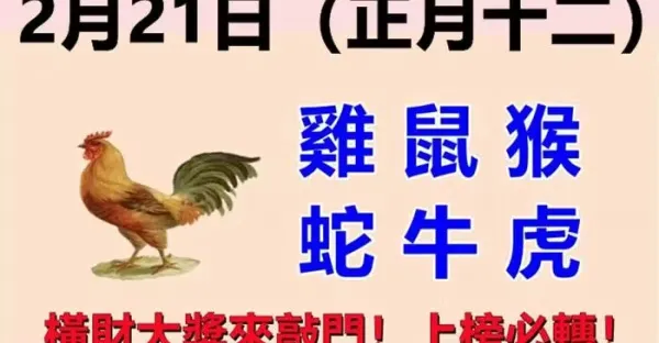 2月21日生肖運勢屬_雞、鼠、猴大吉