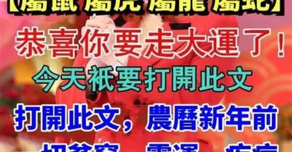 【屬鼠 屬虎 屬龍 屬蛇】恭喜你要走大運了!打開此文,農曆新年前一切貧窮、霉運、疾病統統送走!