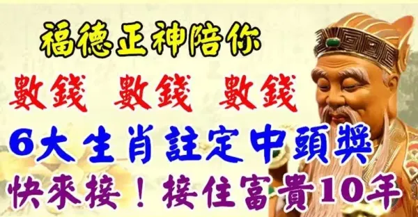 福德正神陪你數錢,六大生肖註定中頭獎,接住富貴十年