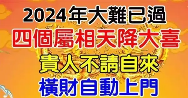 2024大難已過,4生肖天降大喜,貴人喜事不請自來,富得流油!