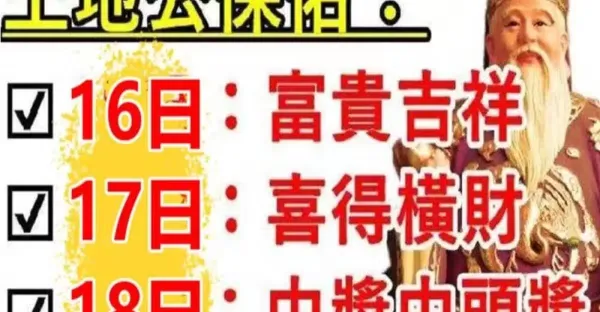 土地公保佑八大生肖:16日富貴吉祥,17日喜得橫財,18日中獎中頭獎有你嘛!