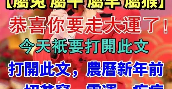【屬兔 屬牛 屬羊 屬猴】恭喜你要走大運了!打開此文,農曆新年前一切貧窮、霉運、疾病統統送走!