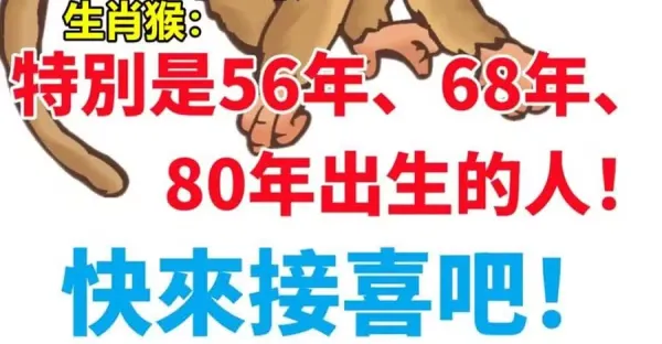 生肖屬猴:特別是在56年、68年、80年出生的人,快來接喜吧!
