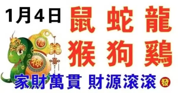 1月4日生肖運勢_鼠、蛇、龍大吉,家財萬貫,財源滾滾!