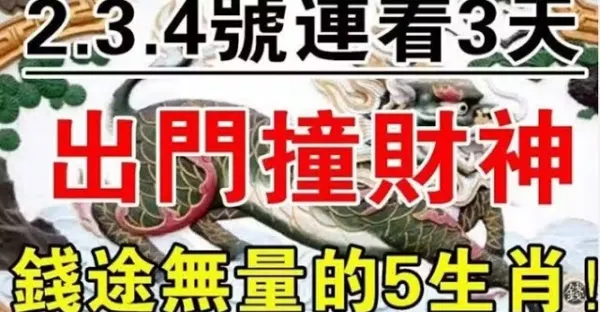 1月2.3.4號連著三天出門撞財神,錢途無量的生肖