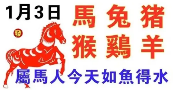 1月3日生肖運勢_馬、兔、豬大吉,今天如魚得水