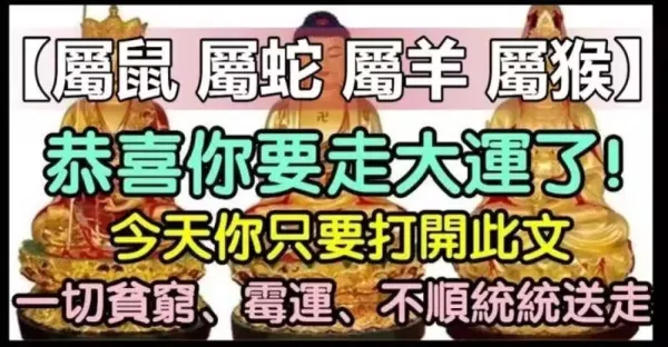 【屬鼠 屬蛇 屬羊 屬猴】恭喜你要走大運了!今天你只要打開此文,一切貧窮、黴運、疾病統統送走! #一樓看完整內文