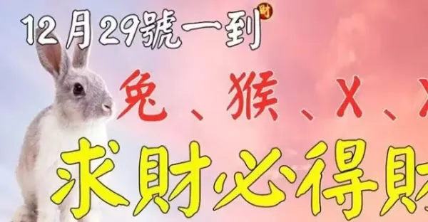 (兔、猴、X、X)12月29號一到求財必得財,上榜請接財