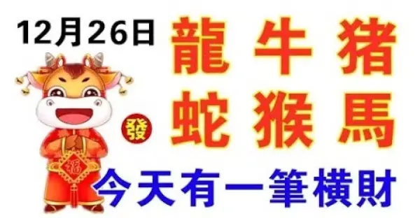 12月26日生肖運勢_龍、牛、豬大吉,今天有一筆特別的橫財!