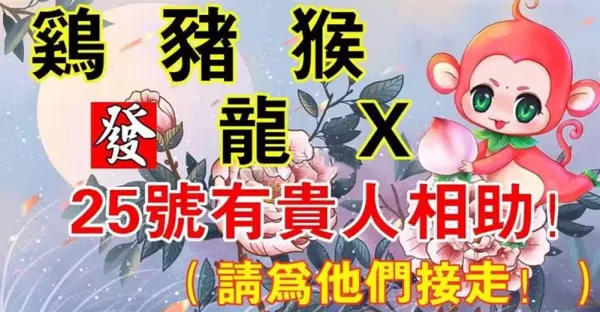 (雞,豬,猴,龍,X)12月25號有貴人相助,請為他們接走