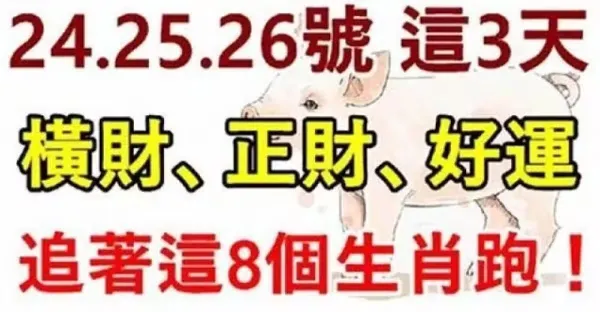 12月24.25.26號這三天橫財、正財、好運追著這八個生肖跑