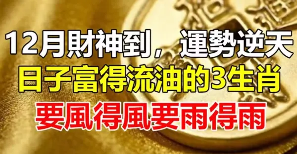 12月財神到,運勢逆天,日子富得流油的「3生肖」要風得風要雨得雨