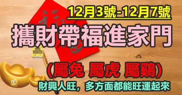 12月3號 到12月7號攜財帶福進家門,財興人旺,多方面都能旺運起來的生肖