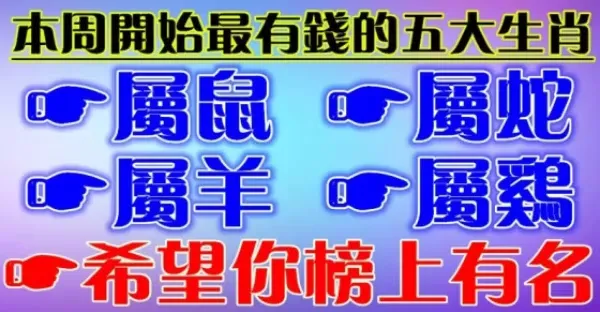 大師推算出來了:三大生肖開始變富,有你的話快來接財哦!