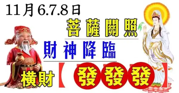 11月6.7.8日菩薩關照,財神降臨,橫財發發發的生肖