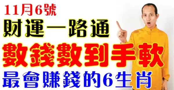 11月6號開始財運一路通,數錢數到手軟,最會賺錢的六生肖