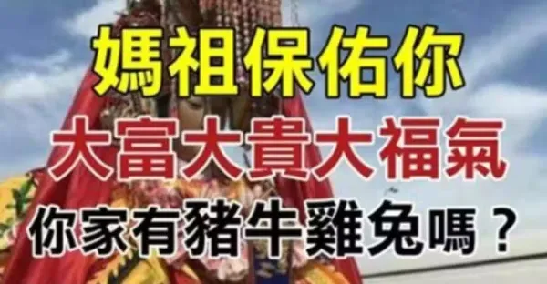 有此生肖全家沾光!媽祖保佑你,大富大貴大福氣!你 家有生肖 豬牛雞兔嗎?