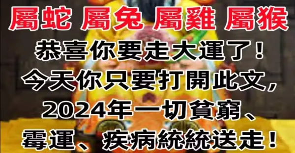 【屬蛇 屬兔 屬雞 屬猴】恭喜你要走大運了!今天你只要打開此文,2024年一切貧窮、霉運、疾病統統送走!