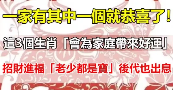 一家有其中一個就恭喜了!這3個生肖「會為家庭帶來好運」 招財進福「老少都是寶」後代也出息‼️