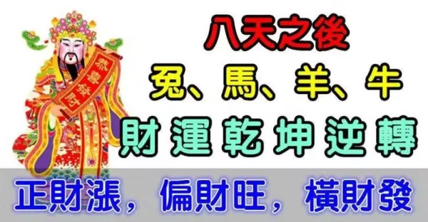 八天之後(兔、馬、羊、牛)正財漲,偏財旺,橫財發。