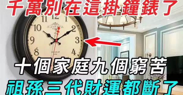 鐘錶掛此處,十個家庭九窮苦!祖孫三代的財運都斷了,嚴重的還會家破人亡,再不看就晚了!