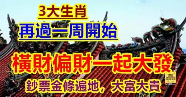再過一周開始,橫財偏財一起大發,鈔票金條遍地,大富大貴的3生肖
