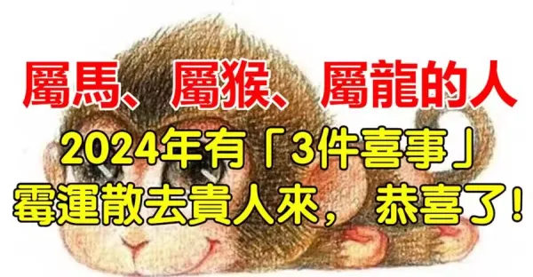 屬馬、屬猴、屬龍的人 2024年有「3件喜事」霉運散去貴人來, 身邊有的恭喜了‼️