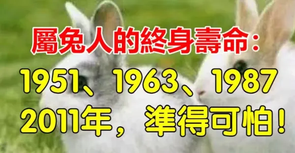 屬兔人的終身壽命:1951、1963、1987、2011年,準得可怕‼️
