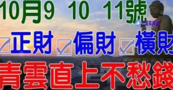 10月9,10,11號正財偏財橫財如雨,青雲直上不愁錢的生肖