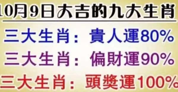 10月9日大吉的九大生肖:貴人運,偏財運,頭獎運