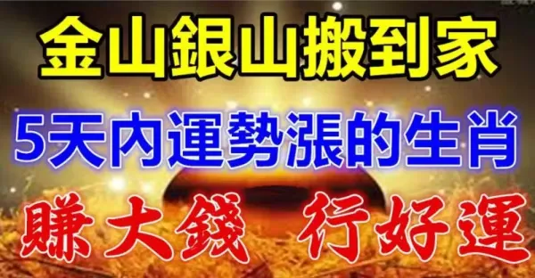 總是、賺不到錢?別急5天內運勢漲, 金山、銀山、搬到家的生肖!