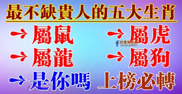 一輩子最不缺『貴人』的五大生肖,有你嗎!!!