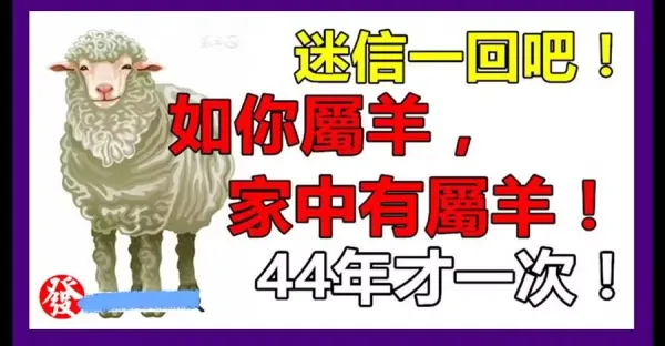 如果你不屬羊,你最愛的人屬羊,或家中有屬羊,44年才一次!迷信一回吧!‼️
