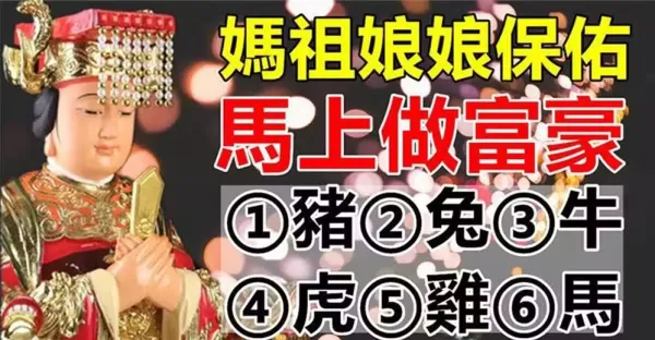 媽祖娘娘保佑!這六大生肖馬上做富豪,好運乘風來,大富大貴!!!