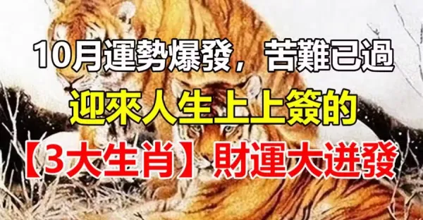 10月運勢爆發,苦難已過,迎來人生上上簽的【3大生肖】財運大迸發