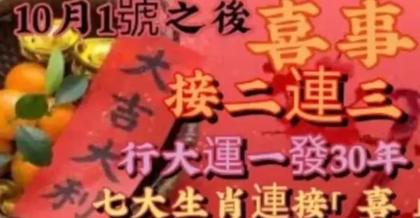 10月1號後七生肖行大運一發30年,喜事接二連三連「接喜」