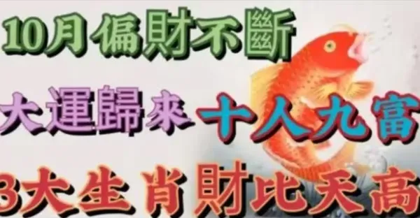 10月偏財不斷,大運歸來,3生肖財比天高,十人九富