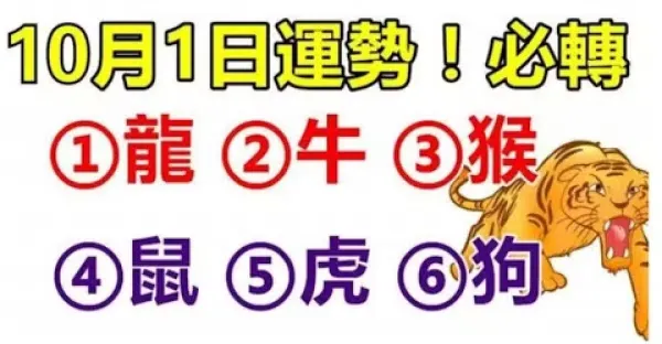 10月1日運勢_龍、牛、猴、鼠、虎、狗大吉,偏財大旺