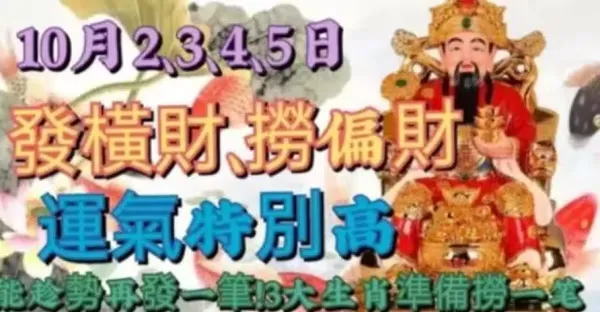 10月2日3日4日5日發橫財、撈偏財,運氣特別高的3大生肖,能趁勢再發一筆!