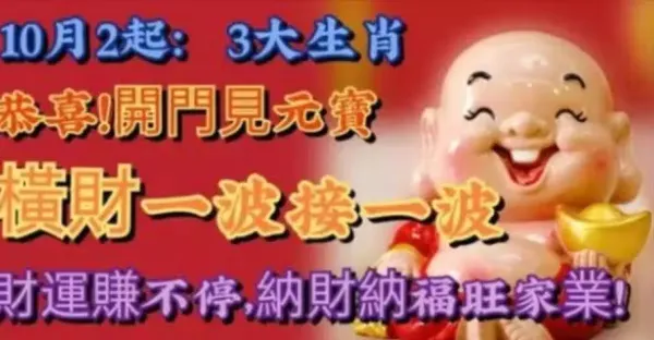 10月2號起,恭喜!開門見元寶,橫財一波接一波,財運賺不停,納財納福旺家業。