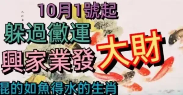 10月1號起,躲過黴運,興家業發大財,混的如魚得水的生肖