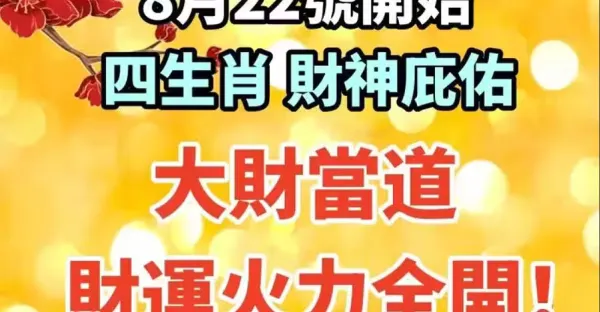 8月22號開始, 四生肖財神庇佑,大財當道!