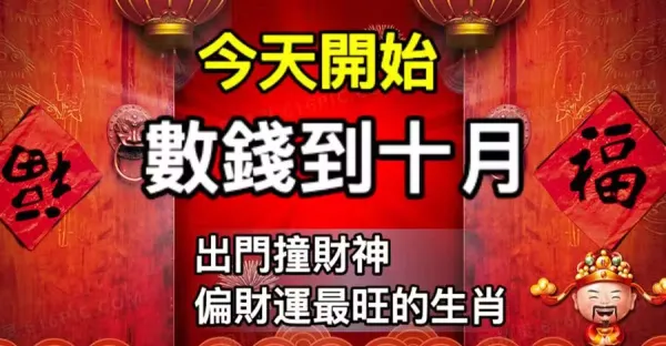 今天開始數錢到十月的生肖,出門撞財神,偏財運最旺,貴人送財來
