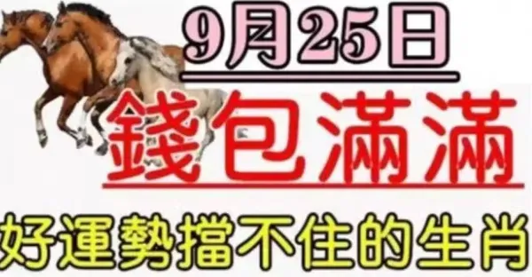 9月25號錢包滿滿,好運勢擋不住的生肖。