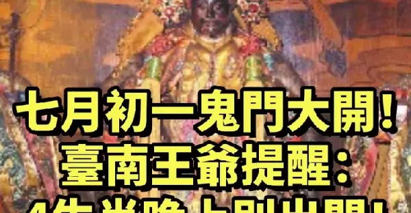 七月初一鬼門大開!台南王爺提醒:四大生肖晚上別出門,小心引禍上身!