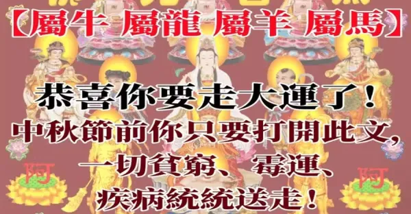 【屬牛 屬龍 屬羊 屬馬】恭喜你要走大運了!中秋節前你只要打開此文,一切貧窮、霉運、疾病統統送走!